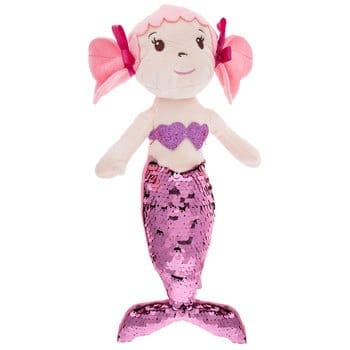 Pink Plush Mermaid With Sequins will go swimmingly with your daughter’s Mermaid-themed birthday party or underwater-themed bedroom! This pretty plush doll is made of polyester fibers and features a mermaid with a dazzling tail and a glittered, heart-shaped top.